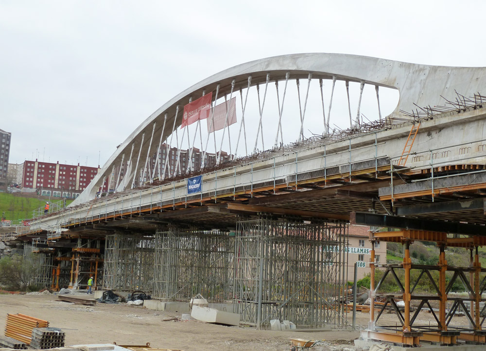 Las zonas más ligeras se apearon con la Cimbra T-60, y las más pesadas con la cimbra T-500. En la zona de estribos, el encofrado se apoyó sobre Martillos MT. Dichos estribos se ejecutaron con el encofrado vertical ORMA.