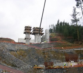El tablero de sección cajón, con canto de 3,64 m, se ejecuta en dos fases, mediante el encofrado ENKOFORM HMK. En la primera, se realiza el fondo y los hastiales y en la segunda, el techo y las alas.