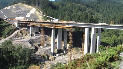 Enmarcado dentro de la Autovía de la Espina A-63 en Asturias, este viaducto constituye su principal infraestructura. Sus 900 m de longitud y voladizos entre pilas de 160 m, le convertirán en el puente con más voladizos sucesivos de España.
