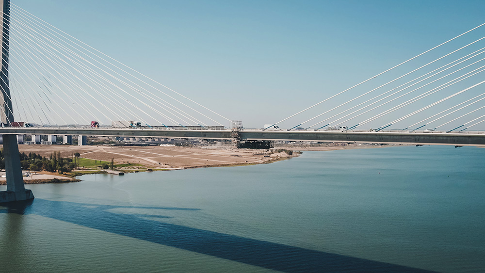 Destacan los dos pilonos principales, de 150 metros de altura. La estructura de pilares sobre el lecho, en la que se cimienta el puente, está diseñada para resistir el impacto de barcos de hasta 30.000 toneladas que se desplacen a una velocidad de 12 nudos. También puede soportar vientos de hasta 250 km/h, y fue diseñado para soportar un terremoto cuatro veces mayor que el que asoló Lisboa en 1755.