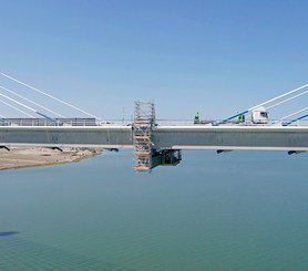 La estructura montada en el tablero para facilitar el acceso a la parte inferior ha consistido en una estructura de andamio multidireccional BRIO con una torre en la parte superior. El resto de la estructura se suspendió 6 m por debajo del nivel del tablero.