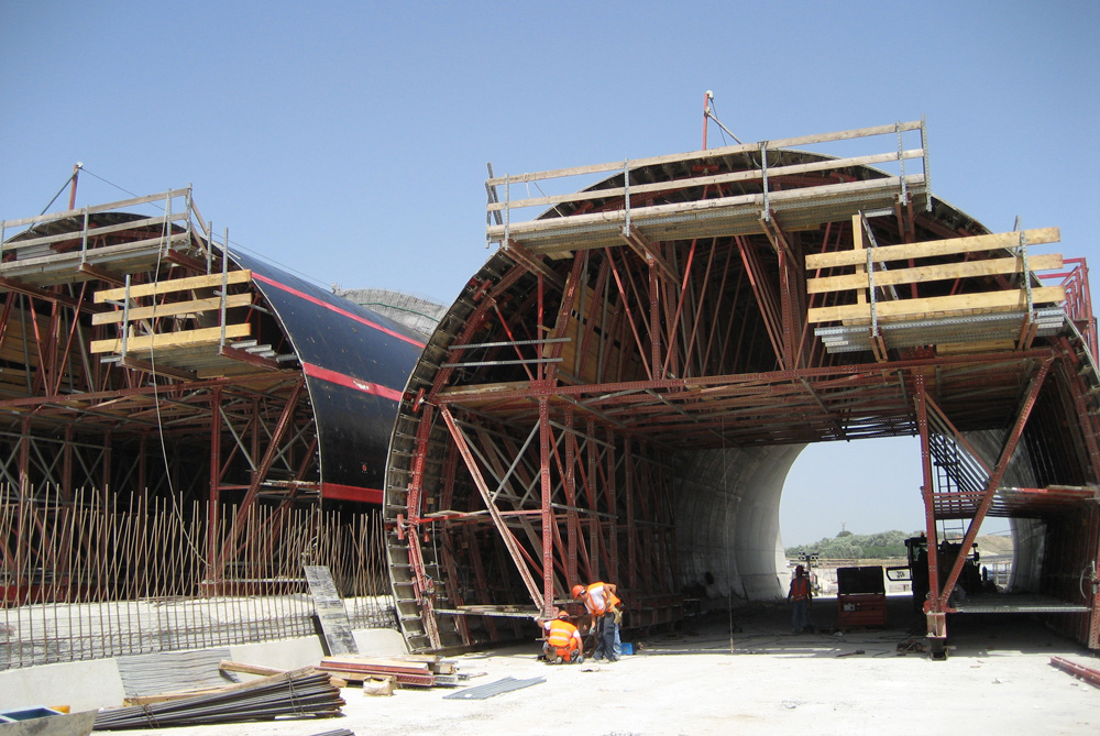 El encofrado interior estaba equipado de un sistema hidráulico que permitió su desplazamiento tanto en sentido vertical como horizontal, consiguiendo así un mayor rendimiento y bajos costes de ejecución. Además, los encofrados dispusieron de un sistema neumático de vibración exterior que proporcionó al hormigón un acabado de alta calidad y redujo los tiempos de ejecución.