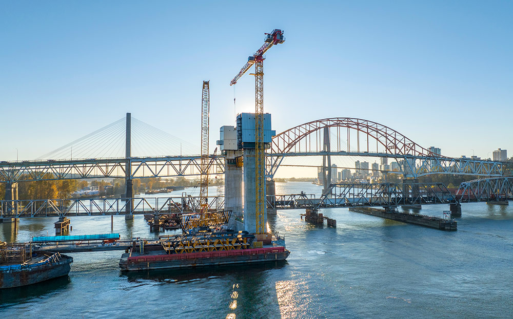 El puente de Pattullo, que cruza el río Fraser, es una conexión clave entre New Westminster y Surrey (Columbia Británica, Canadá). El puente, que tiene más de 80 años y no cumple con los estándares de diseño actuales, está siendo reemplazado por una nueva estructura que mejorará la circulación y la seguridad de conductores, ciclistas y peatones, así como el transporte de mercancías.