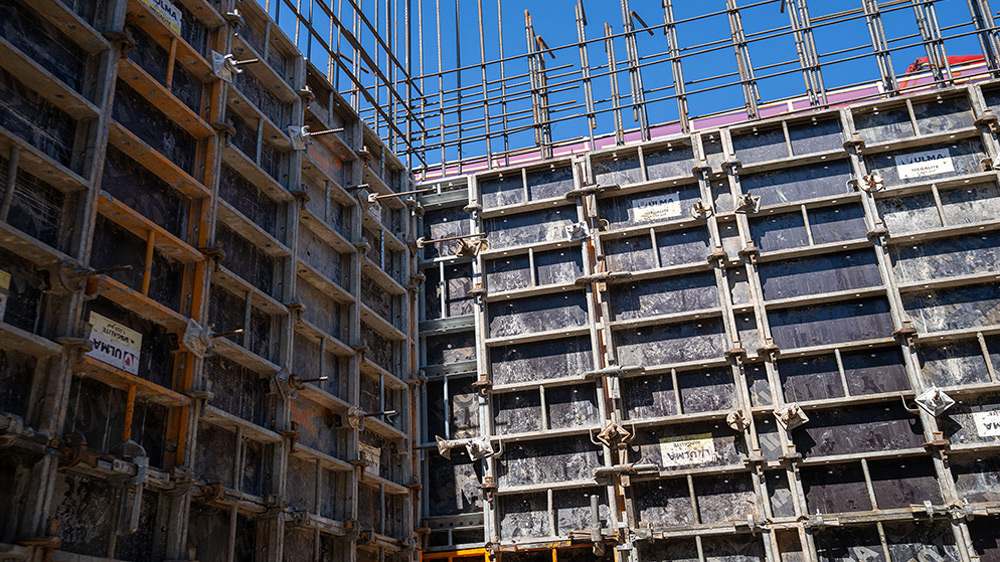 Dada la complejidad de la estructura, que incorpora rampas y distintos niveles de apeo, se ha planificado el suministro de material conforme a las necesidades de cada fase, optimizando tiempos y recursos. Asimismo, el sistema trepante RKS ha permitido el izado de los paneles de encofrado sin necesidad de desmontar la estructura del muro, aportando precisión y continuidad al proceso constructivo.