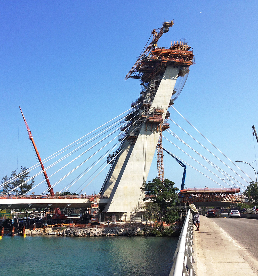 Dentro de las actuaciones que se están llevando a cabo, una de las obras más importantes en cuanto al desafío y dimensiones, es la construcción de un puente atirantado de 72 m de altura y 320 m de largo.