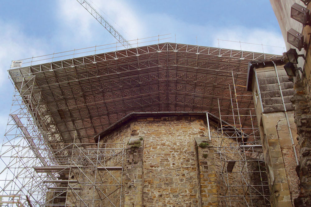 En cuanto a sistemas de protección utilizados en la construcción o rehabilitación de edificios de gran altura, el andamio multidireccional BRIO certificado según norma europea EN 12810-1/2 y EN 12811-1/2/3 ofrece soluciones como la creación de escaleras de acceso seguro a diferentes zonas de la obra, pasarelas públicas que permiten la circulación de peatones sin ningún tipo de riesgo, cubiertas que proporcionan un espacio cómodo y protegido para trabajos de restauración y mantenimiento o torres de andamio que adquieren la funcionalidad de plataformas de trabajo seguras que pueden alcanzar los 12m. de altura.
