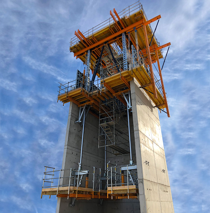 - Sistema autotrepante ATR - Una estructura de soporte de encofrado, ideal para la construcción de muros y otras estructuras verticales. Este sistema ayuda a aumentar la productividad en la obra. Junto con el trepado hidráulico, el ATR no depende de la ayuda de la grúa; las plataformas de trabajo y el distribuidor de hormigón pueden elevarse simultáneamente. Y es garantía de seguridad ya que proporciona una elevación y manipulación segura en altura.