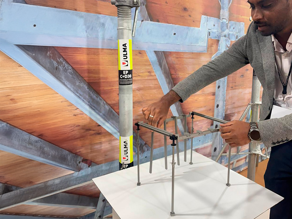 Los profesionales que han visitado el stand de ULMA han podido conocer las soluciones como el encofrado modular recuperable ONADEK, el encofrado modular ligero y multifunción LGW-MP y la pantalla de protección perimetral HWS, además de tener la ocasión de visitar la fábrica donde se producen nuestros sistemas gracias a la tecnología realidad virtual