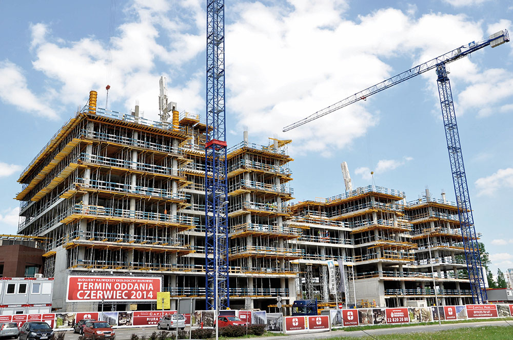 Gracias a los sistemas autotrepantes se ha realizado una rápida ejecución de los dos núcleos del Complejo EuroCentrum en Polonia.