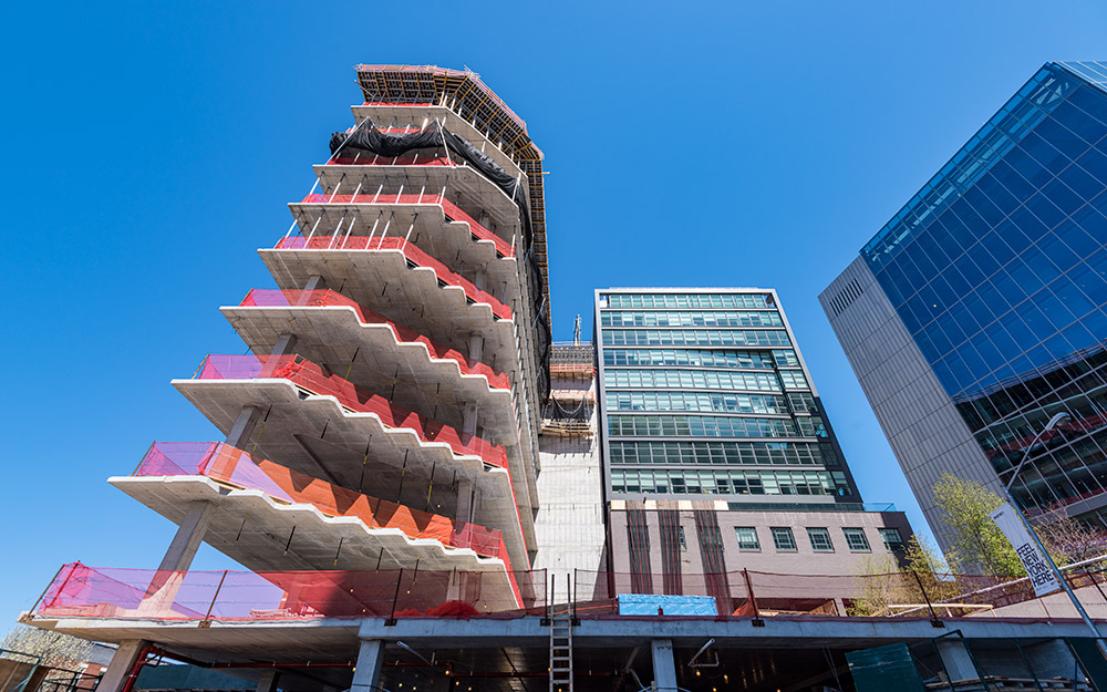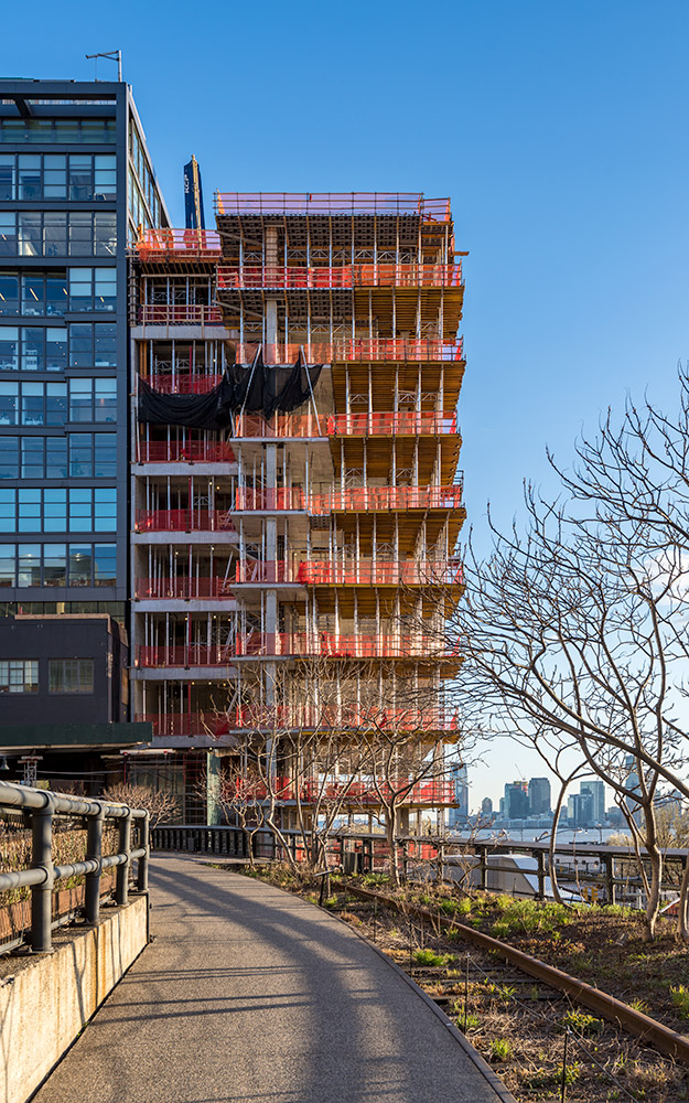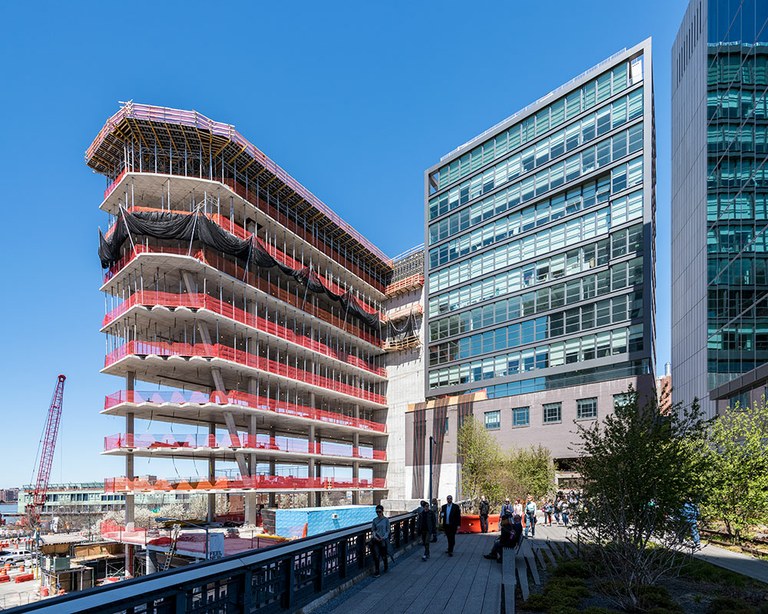 Vistas al río Hudson desde un edificio de geometría única